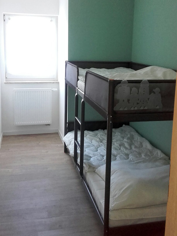ein zweites Schlafzimmer mit Etagenbett (je 90×200) für die Kinder,