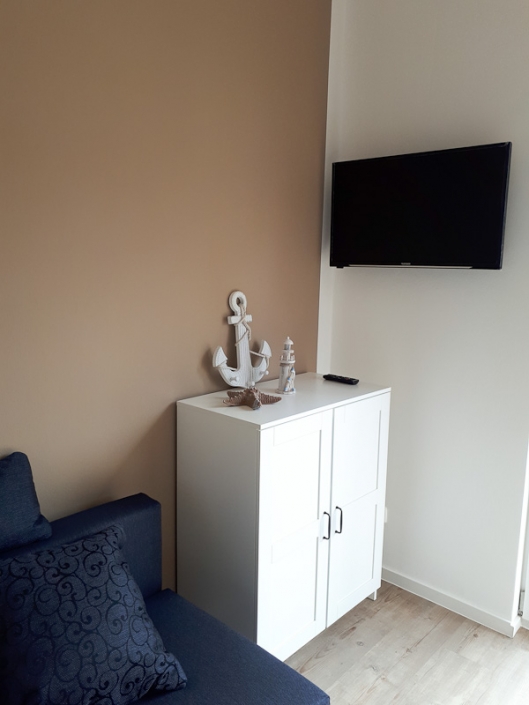 Im Wohnbereich befindet sich ein LCD-Flachbild Fernseher.