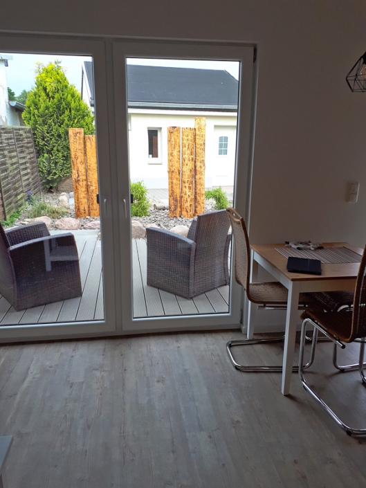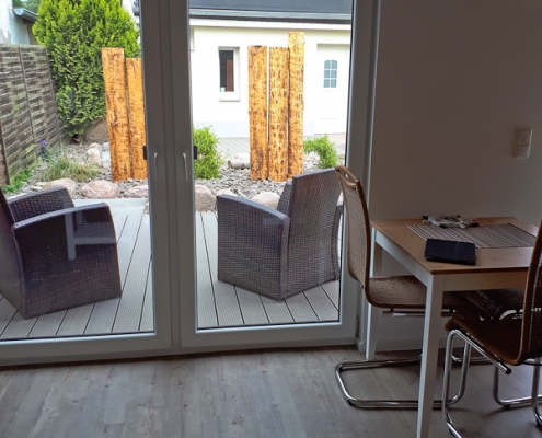 An den Bungalow schließt sich eine neu gestaltete Sonnenterrasse